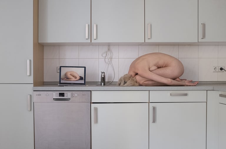 Confined at their respective houses during the European lockdown following the COVID-19 outbreak in March 2020, AnaHell and Nathalie Dreier were challenged to reinvent their usual way of photographing: how to carry on a visual practice that juicily celebrates the body and physical contact in times of isolation and distancing?