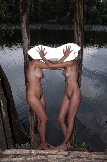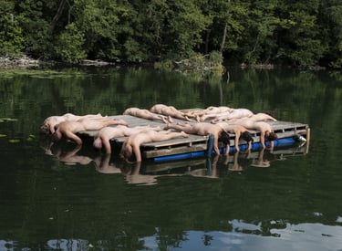 The original footage of ‘Shangri-La’ was recorded in a present-day community setting as a performative action. The bare and surrendering bodies represent the act of giving up one’s identity for a ‘greater good’, for a common ideology. Such realities can quickly lead to dogmatic, black-and-white thinking and can especially thrive in settings that are isolated - in bubbles that are very often shaped by censorship: Censorship from the outside world, censorship of information and, ultimately, a censorship of the self.