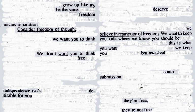 ‘Garden of Just Enough’ is a story of isolated communities, secrecy and the loss of identity. In this work, we merge past, present and performance, to conceal and reveal fragments of who we are. We use archival material from our upbringing in the Children of God and our own photographic work, which we deconstruct and reconstruct through censorship, hiding and editing. This journey through bounded choice and manipulation gives insight, while showing that as an outside observer, the cult never gives you the full picture of what goes on inside.